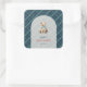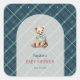 Navy Blue Plaid Teddy Bear Boy Baby Shower Square Sticker