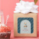 Welcome your little one with timeless charm. This baby shower sticker features a sweet teddy bear with a blue ribbon, framed in a classic arch design. The background showcases a traditional navy blue plaid inspired by Ralph Lauren style, with subtle hints of lime green and pink for a fresh, modern touch. The reverse side is a solid navy blue, offering a simple, elegant finish. Perfect for those who love a sophisticated yet cosy look, this invitation blends tradition with just the right dash of contemporary flair.