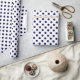 A wrapping paper built with a navy blue polka dot pattern with a medium distance between the dots on a white background. Customize the white background among other options.