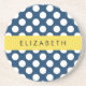 Navy Blue Polka Dots, Polka Dot Pattern, Your Name Coaster