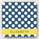 Navy Blue Polka Dots, Polka Dot Pattern, Your Name Coaster