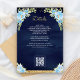 Elegant baby shower details card featuring beautiful blue flowers and QR code for gift registry or online rsvp.