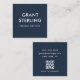 Navy Blue QR Code Simple Minimal Typography Square Business Card