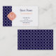 Navy Blue Quatrefoil Pattern with Monogram Business Card