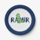 Navy Blue "RAWR" Green Dinosaur Party Paper Plate
