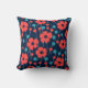 Navy Blue Red Poppy Seamless Floral Print Throw Pillow