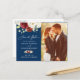 Navy Blue Red White Floral Photo Save the Date Postcard