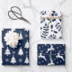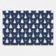 Navy Blue Reindeer, Christmas Tree & Holly Pattern Wrapping Paper Sheet