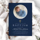 Navy Blue Religious Cross Boy Photo Baptism Invitation