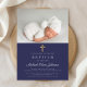 Personalised Navy Blue Religious Cross Photo Boy Baptism Invitation.