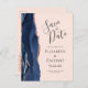 Navy Blue Rose Gold Agate Blush Save the Date Announcement Postcard
