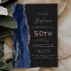Navy Blue Rose Gold Agate Dark 50th Birthday Invitation