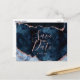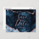 Navy Blue Rose Gold Agate Marble Save the Date Announcement Postcard