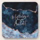 Navy Blue Rose Gold Agate Marble Wedding Monogram Coaster
