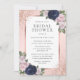 Navy Blue Rose Gold Blush Floral Bridal Shower Invitation