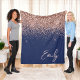 Navy Blue Rose Gold Blush Pink Glitter Monogram Fleece Blanket