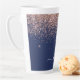 Navy Blue Rose Gold Blush Pink Glitter Monogram Latte Mug