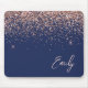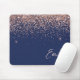 Navy Blue Rose Gold - Blush Pink Glitter Monogram Mouse Pad