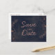 Navy Blue & Rose Gold Foil Rustic Save the Date Announcement Postcard