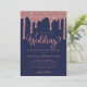 Navy Blue Rose Gold Glam Glitter Wedding Invitation