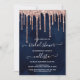 Navy Blue Rose Gold Glitter Drips Bridal Shower Invitation