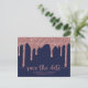 Navy Blue Rose Gold Glitter Drips Save The Date Announcement Postcard