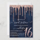 Navy Blue Rose Gold Glitter Drips Sweet 16 Invitation