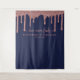 Navy Blue Rose Gold Glitter Drips Wedding Backdrop Tapestry