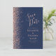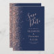 Navy Blue Rose Gold Glitter Save the Date Announcement