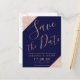 Navy blue Rose gold glitter script save the date Announcement Postcard