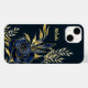 Navy Blue Rose Gold Leaves Monogram Case-Mate iPhone Case