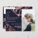 Navy Blue Rose Gold Marble Diagonal Save the Date Postcard