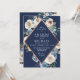 Navy Blue Rose Gold Neutral Floral Wedding Invitation