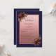 Navy Blue Rose Gold Script Burgundy floral wedding Invitation
