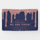 Chic Navy Blue and Rose Gold Sparkle Glitter Drips Business Opening or Reopening Banner with our trendy faux glitter drips in blush pink/rose gold and your name, business name, or logo. Perfect for advertising your opening, reopening, or just for showing off your luxury aesthetic. You're dripping in luxury, so your gear should be, too! Please contact us at cedarandstring@gmail.com if you need assistance with the design or matching products.