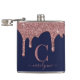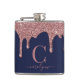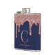 Navy Blue Rose Gold Sparkle Glitter Drips Monogram Hip Flask