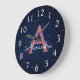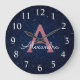 Navy Blue & Rose Gold Sparkle Glitter Monogram Large Clock