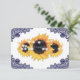 Navy Blue Rustic Floral Lace Sunflower Wedding RSVP Card