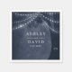 Navy Blue Rustic Tree Lights Initials Wedding Napkin