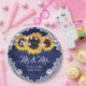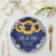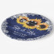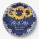 Navy Blue Rustic Wood Lace Sunflower Wedding Paper Plate