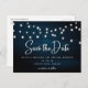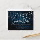 Navy Blue Rustic Wood String Lights Save The Date Postcard