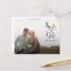 Gorgeous navy blue cursive script typography on the front of this designer postcard which you can upload into with your own engagement/save the date photo portrait. Easily and quickly personalise this designer professionally printed save the date postcard here and now by just typing over the example text and adding your own photograph. Elegant, chic, simple and classy navy script/cursive typography