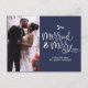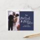 Navy Blue Script Married and Merry Christmas Holiday Postcard