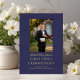 Personalized Navy Blue Script Photo Boy First Holy Communion Foil Invitation.