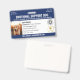 Horizontal service dog ID badge in navy blue and white with room for a photo of the service dog and two logos. Add name, title, and registration number and date issued. Add the handler's name and contact information too.
