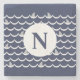 Navy Blue Shark Fin Monogram Stone Coaster