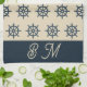 navy blue ship wheel & Monogram Beige Coastal home Tea Towel