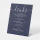 Navy Blue Signature Script Wedding Drinks Menu Pedestal Sign