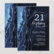 Navy Blue Silver Agate 21st Birthday Invitation
