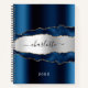 Navy blue and faux silver metal and agate, marble stone print as background. Personalise and add your name. The name is written with a modern hand lettered style script.